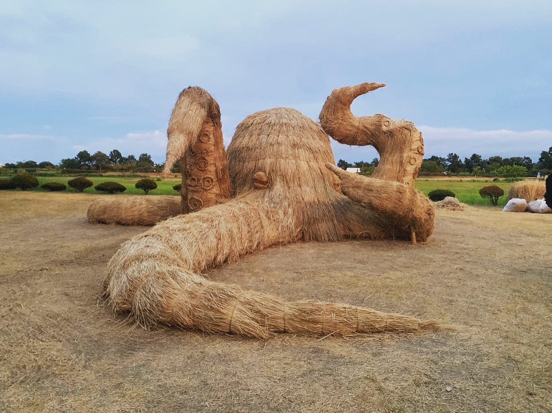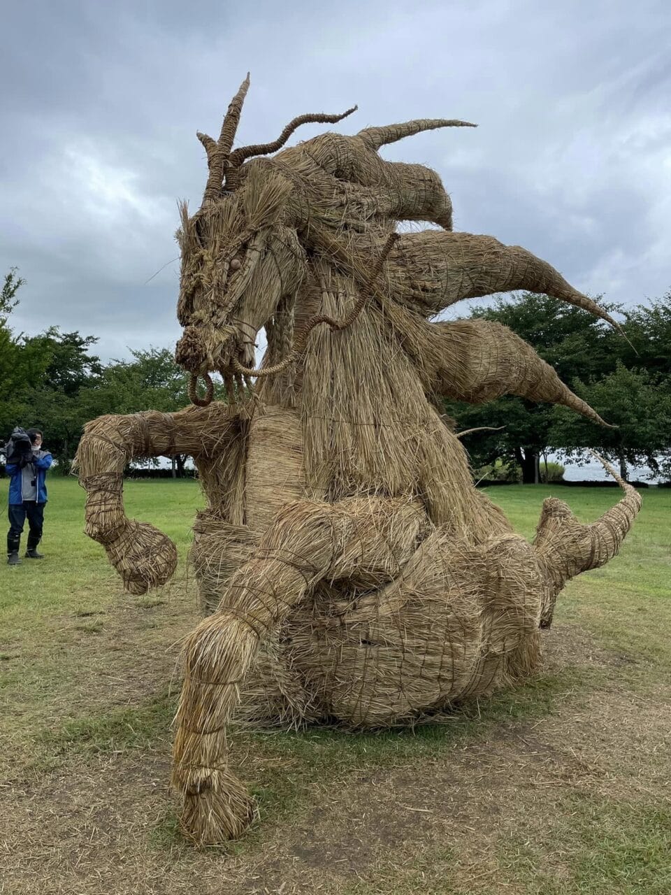 Since 2008, students at the Musashino Art University in Tokyo have traveled to Kamizeki Lagoon Park in Niigata City, Japan, to erect huge sculptures made from straw.