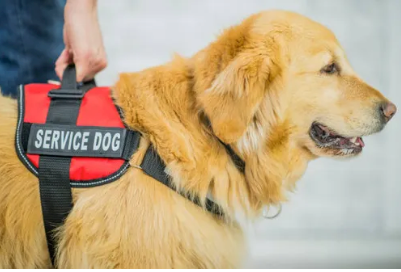 Hazel is a nine-year-old golden retriever, steady and gentle, the kind of dog who looks like she was born knowing how to take care of people. Her bright red vest always gets a few smiles, but mostly people just step around us and keep going.