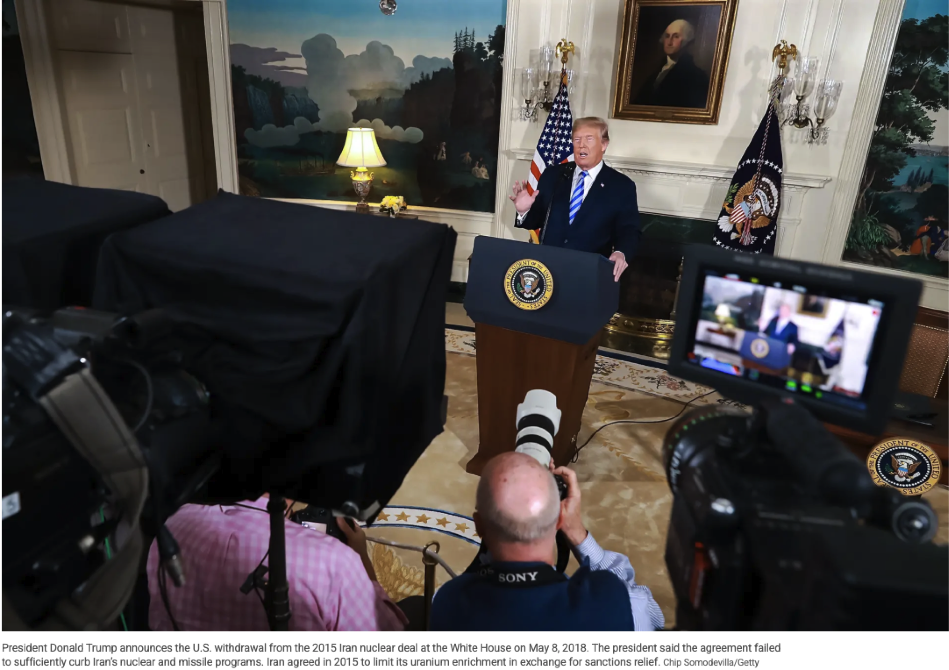 On May 8, 2018, President Donald Trump withdrew the United States from the 2015 deal, citing concerns that it wouldn’t do enough to restrain Iran’s nuclear development, its ballistic missile program, and its support for designated terrorist groups throughout the Middle East. As he exited the deal, Trump ordered a new “maximum pressure” sanctions campaign against Iran and said he would negotiate a new deal to better restrain Iran’s nuclear ambitions.