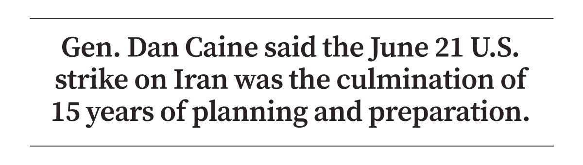 The June 21 U.S. strike on Iran was the culmination of 15 years of planning and preparation, Caine said.