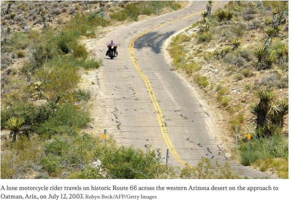 The highway gained fame through John Steinbeck’s novel “The Grapes of Wrath” and Bobby Troup’s 1946 song “Get Your Kicks on Route 66.”