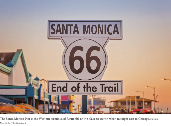 If you drive far enough west, she said, you will eventually see the Route 66 “End of the Trail” sign at Santa Monica Pier.