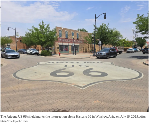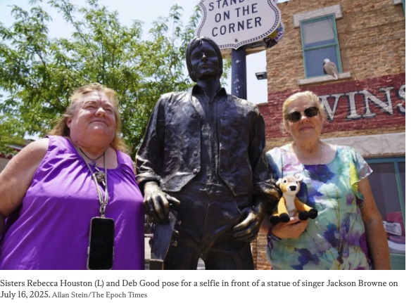 WINSLOW, Ariz.—Rebecca Houston and Deb Good drove 1,600 miles from Chicago to stand on a corner in Winslow, Arizona, along the historic Route 66.