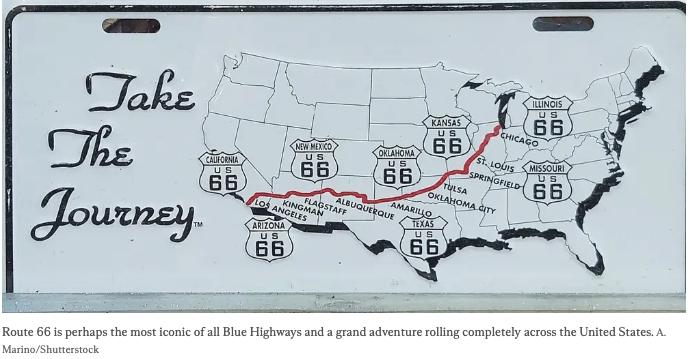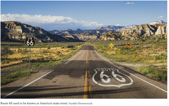 The highway gained fame through John Steinbeck’s novel “The Grapes of Wrath” and Bobby Troup’s 1946 song “Get Your Kicks on Route 66.”