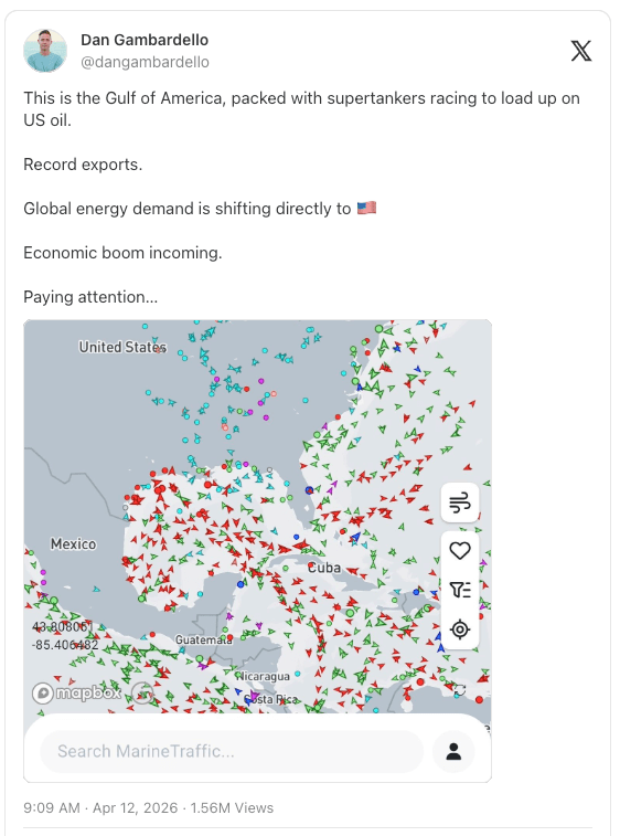 Even better, when Iran tried to strangle the global oil market by closing the Strait, it sent all those empty tankers directly to American ports. There is currently a wave of empty tankers heading through the Gulf of America to fill up. As President Trump put it on Truth Social, “Massive numbers of empty oil tankers, some of the largest anywhere in the World, are heading, right now, to the United States to load up with the best and ‘sweetest’ oil (and gas!) anywhere in the World. We have more oil than the next two largest oil economies combined – and higher quality. We are waiting for you. Quick turnaround!“